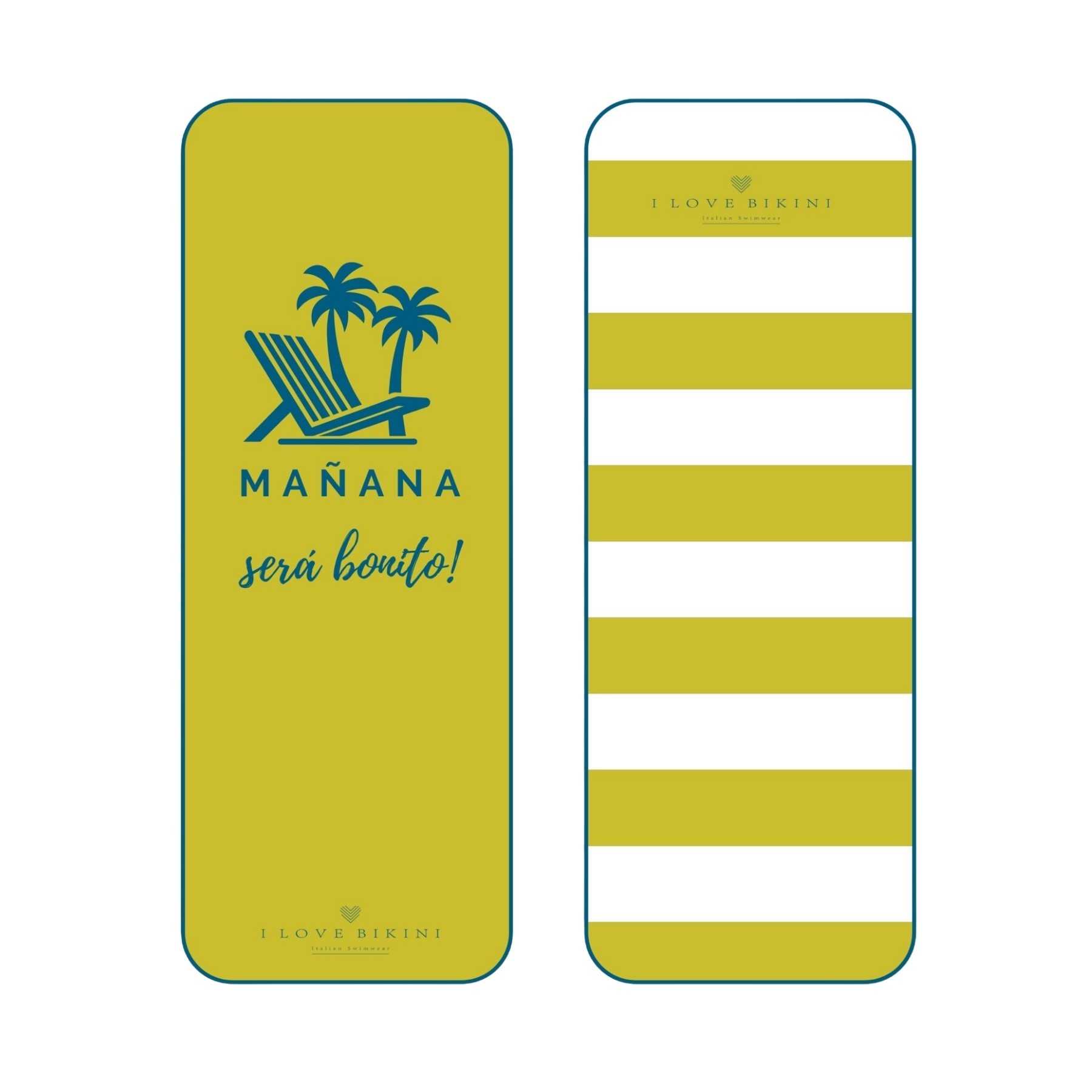 Strandtuch aus Mikrofaser mit der Aufschrift „MANANA SERA' BONITO“.