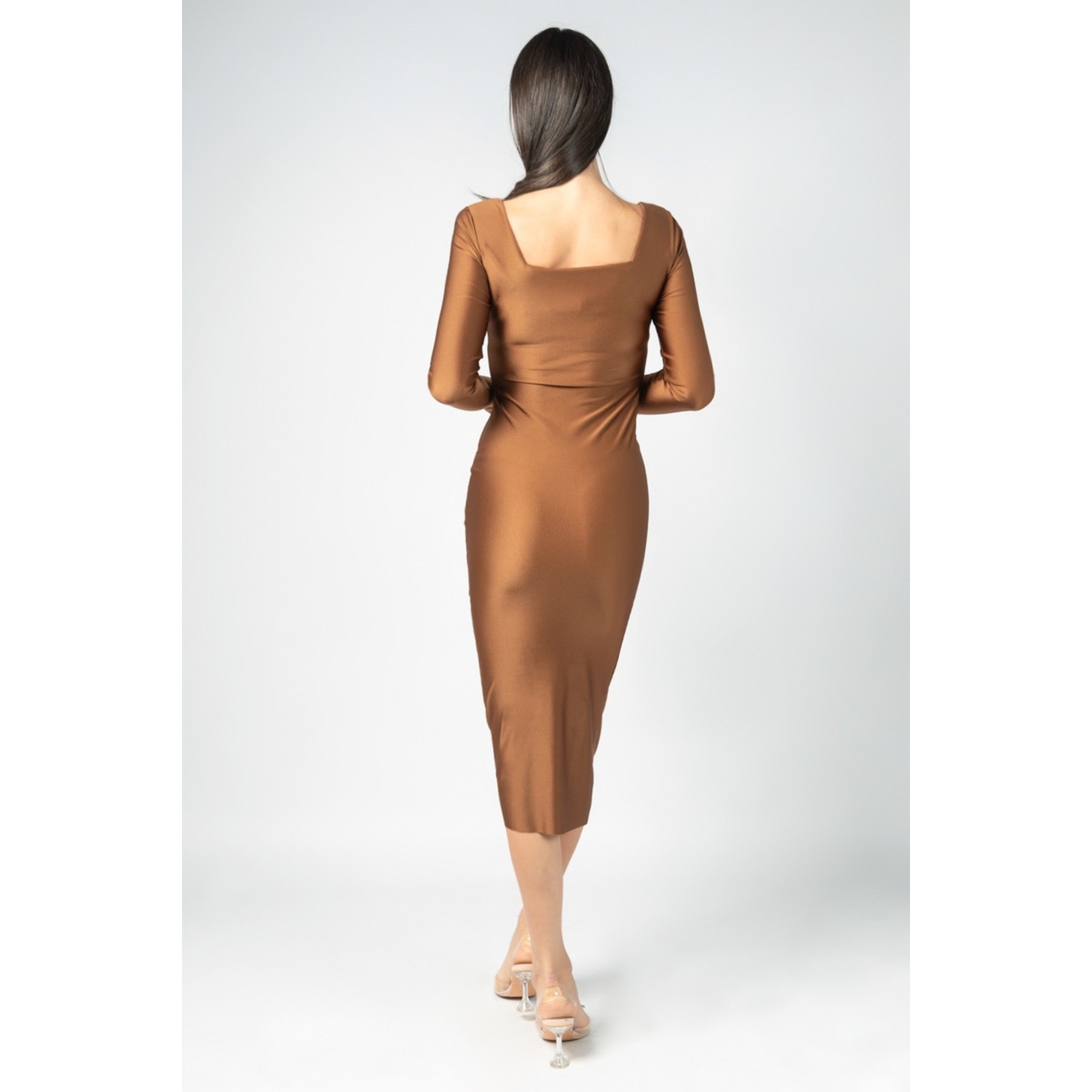Robe midi en lycra à encolure carrée