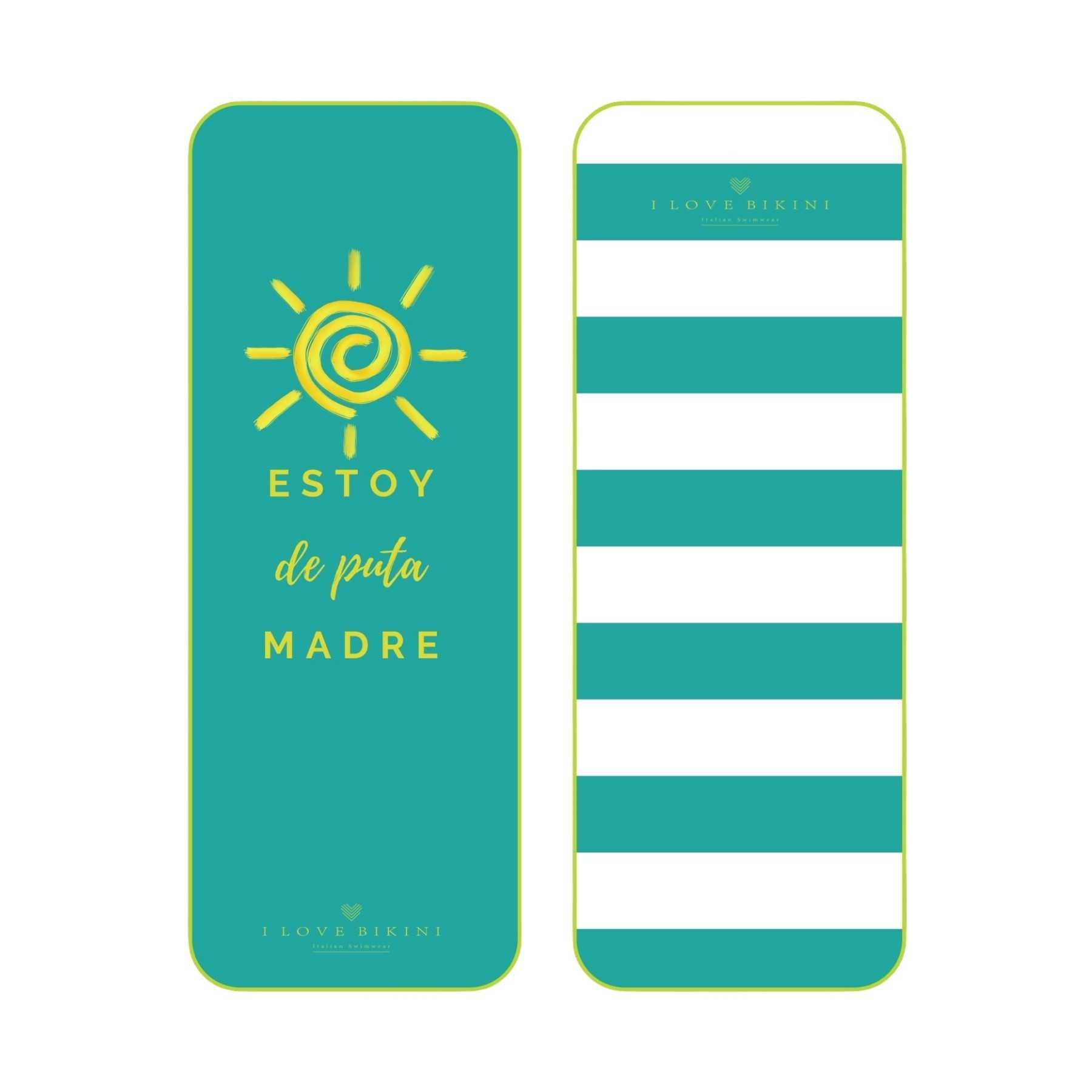 Serviette de plage en microfibre avec l'inscription « ESTOY DE PUTA MADRE ».