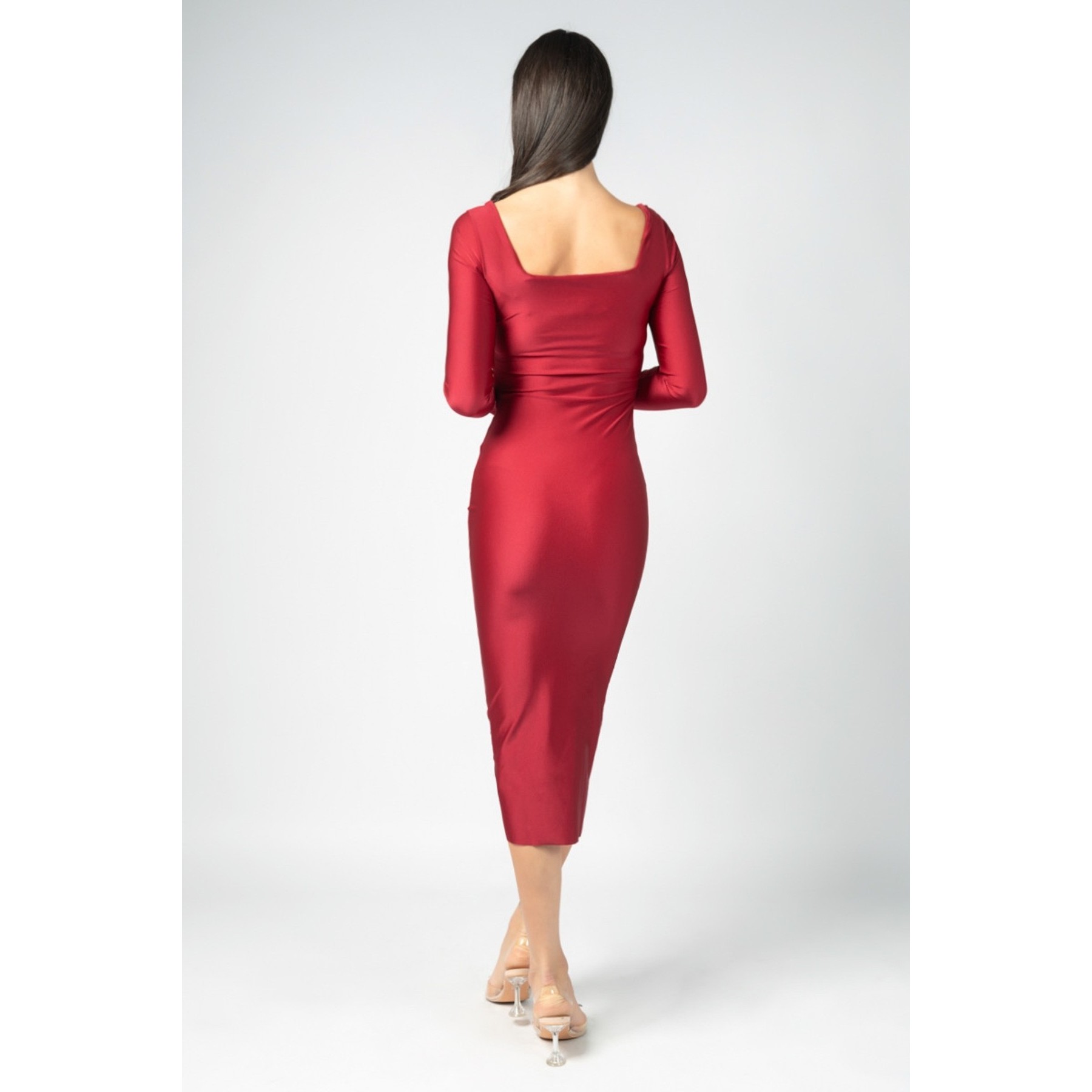 Abito midi in lycra con scollo quadro